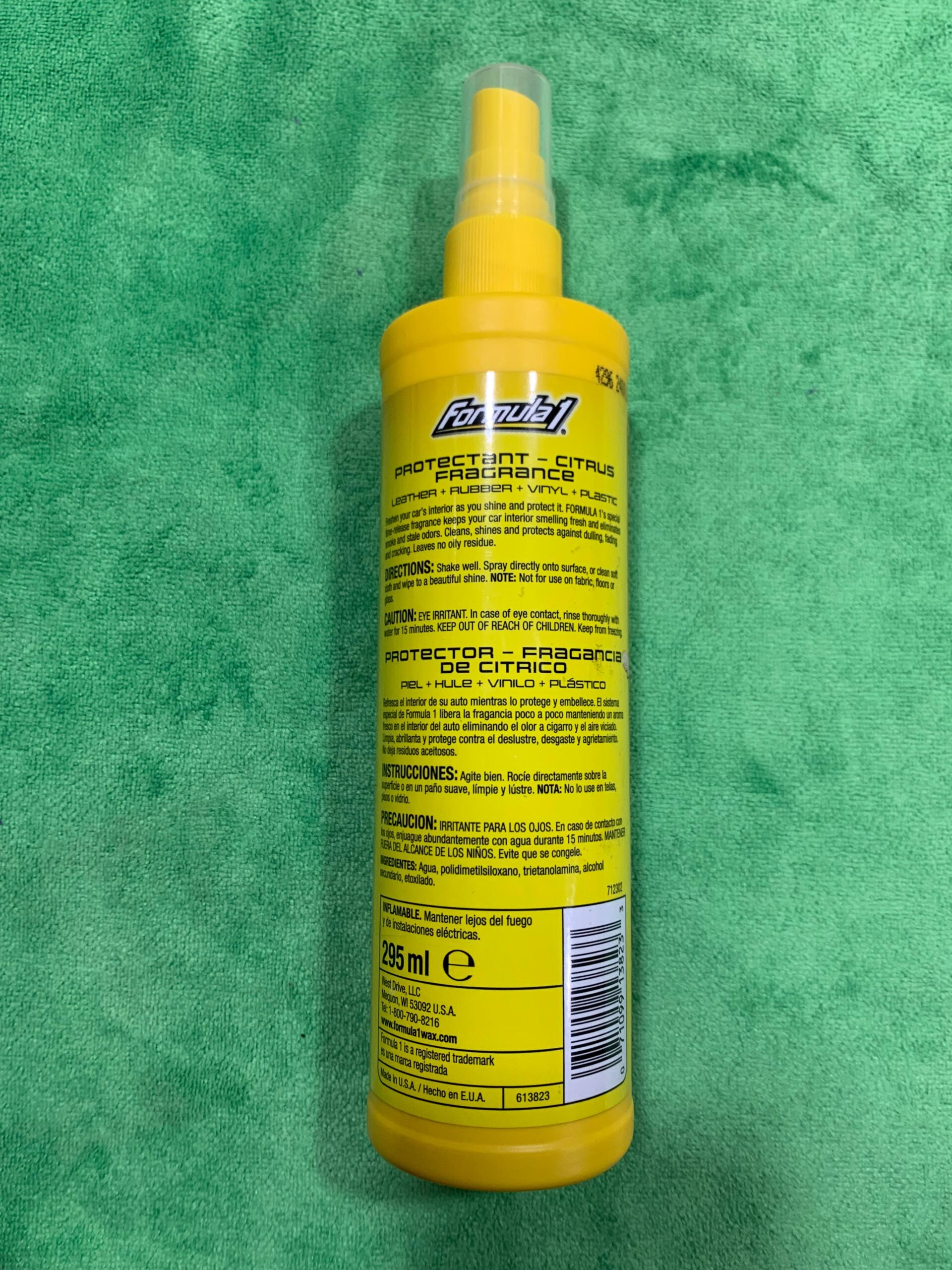 Formula 1 Protectant 315ml is a premium automotive care product designed to clean, protect, and restore the shine of your vehicle’s interior and exterior surfaces. This multi-purpose formula provides long-lasting protection against UV rays, dust, dirt, and fading, keeping dashboards, vinyl, rubber, and plastic surfaces looking new. It is perfect for car enthusiasts, daily drivers, and professional detailers who want to maintain a showroom finish.