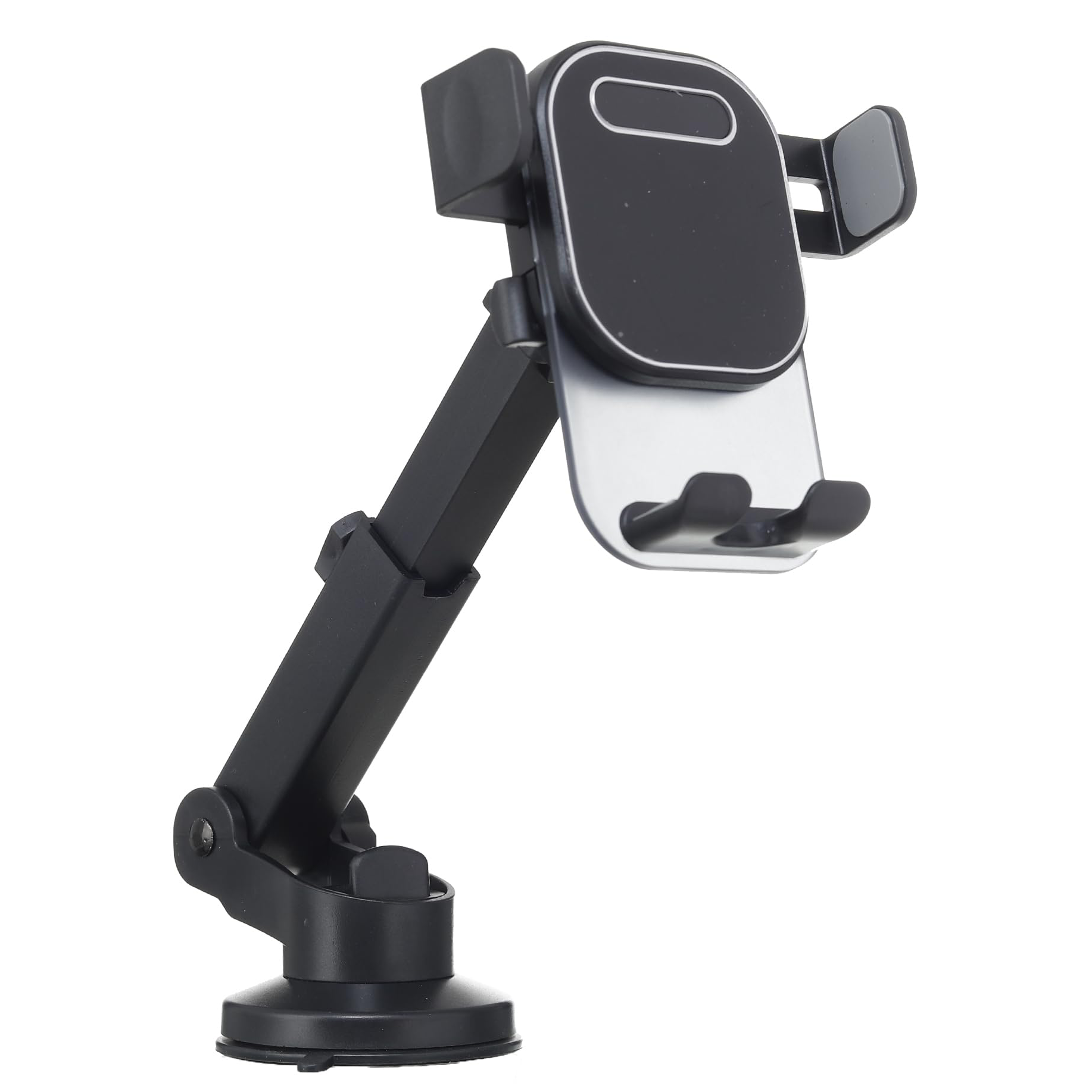 Strong suction cup mount with adjustable arm for cars.
